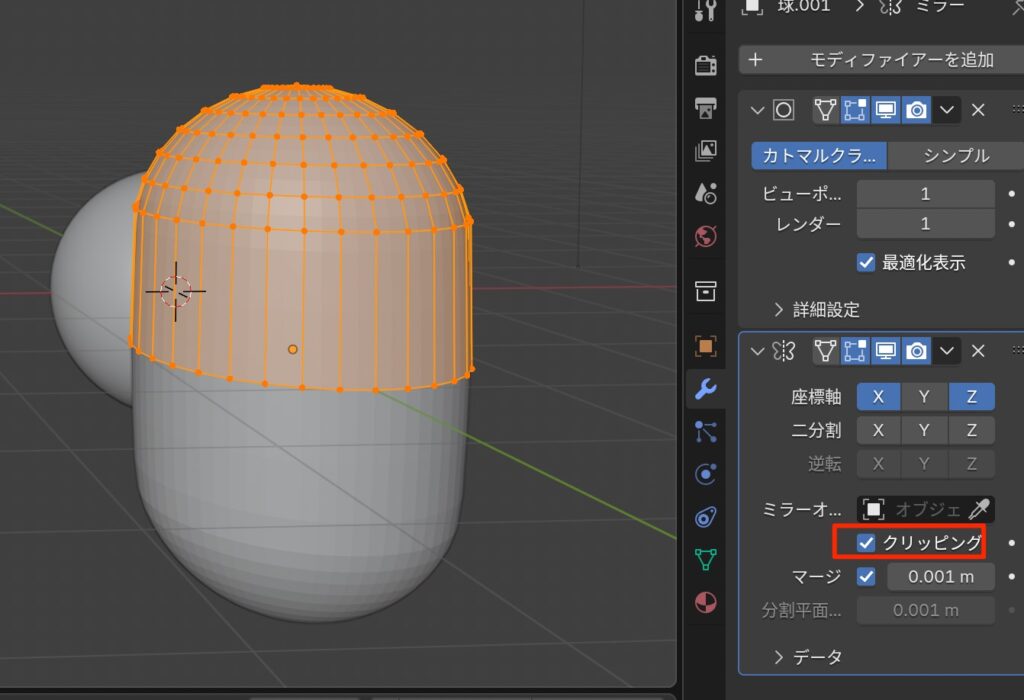 ゆるキャラをモデリング! Blender 2025.11.102025.11.11 目次 チュートリアルポイントミラーからの分離完成感想 チュートリアル ポイント ミラー時にクリッピングにチェックを入れると連結してくれる ミラーからの分離 ミラーを適用 編集モード p > 構造で分離 完成 感想 ミラーの扱いの復習 3点照明のやり方について解説されていた、物撮りをする時に参考になりそう