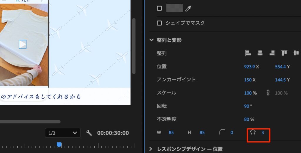 • シェイプ 多角形の角の数は以下で調整