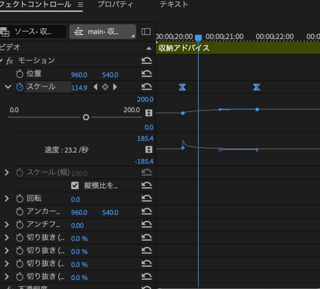 • 位置とスケールにキーフレームを追加
