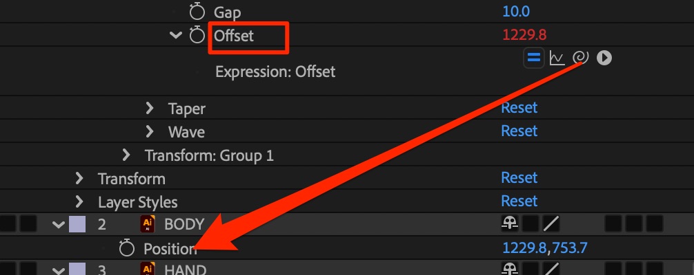- 図の部分のRotationのエクスプレッション