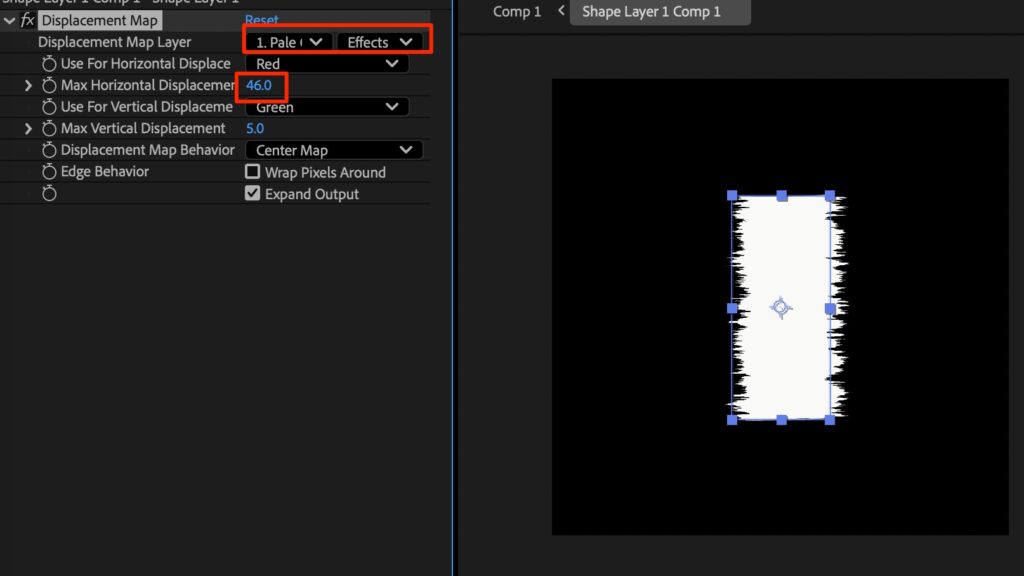 • shapeレイヤーに effect > displacement map