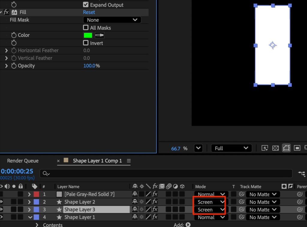 • shapeレイヤーに effect > fill で255,0,0