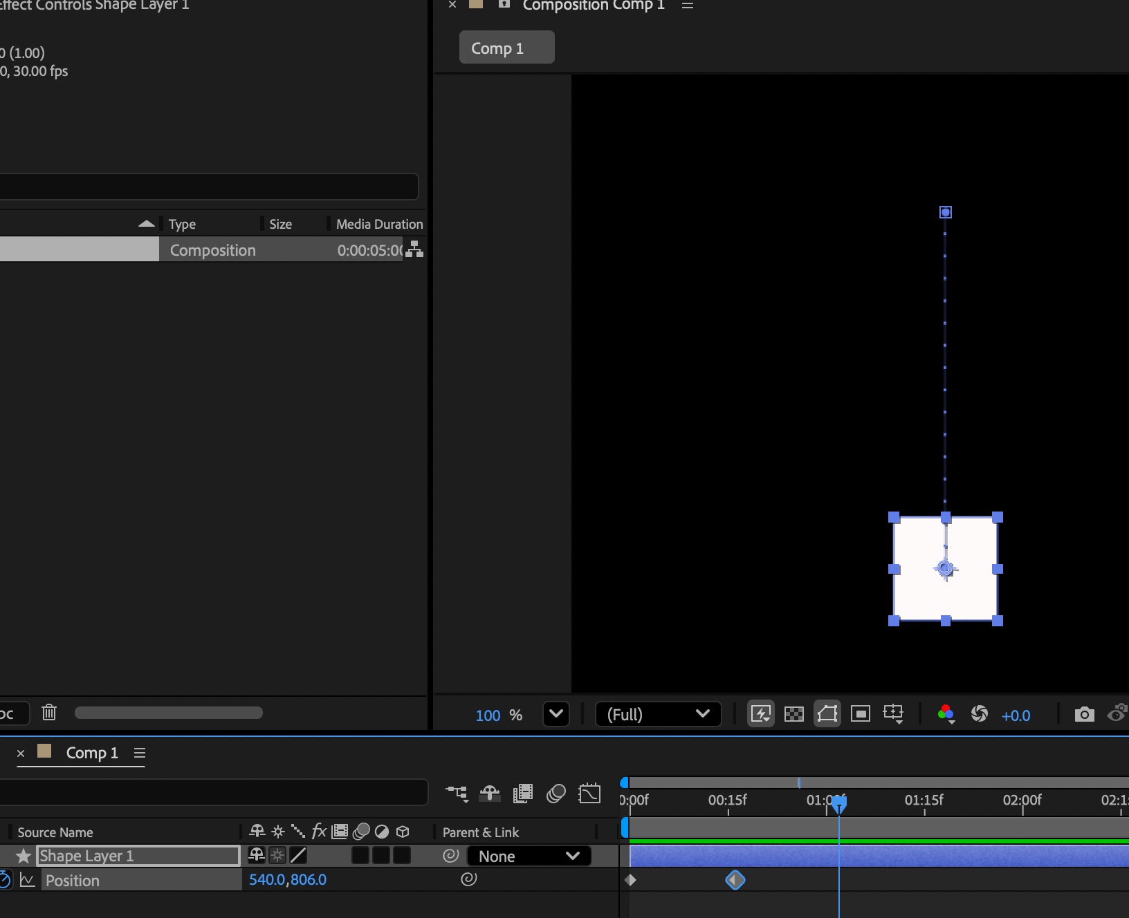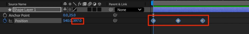 - 正方形を作成し、ポジションのキーフレーム