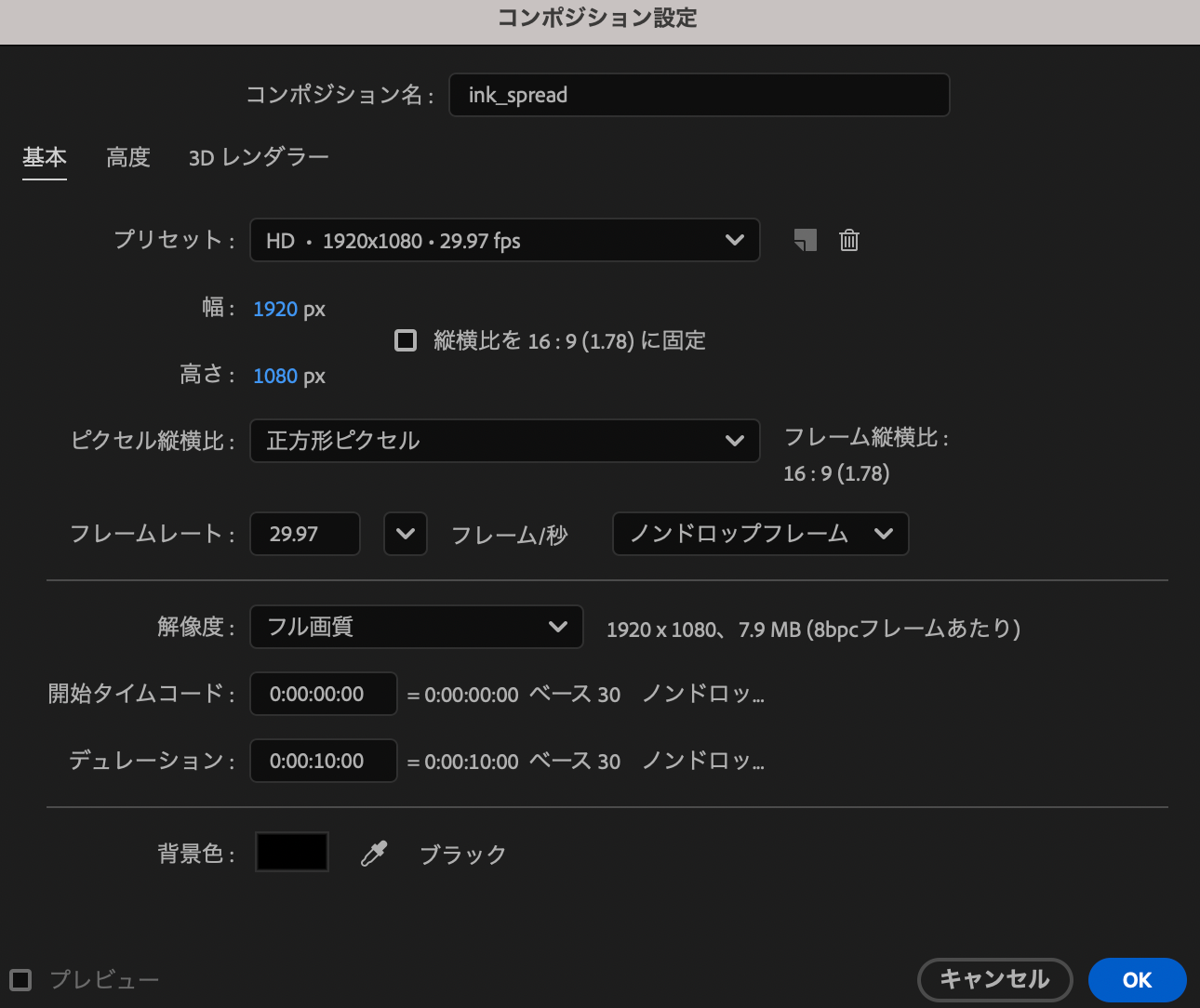 - 2つのレイヤーを選択してプリコンポーズ(ctr+shift+c)