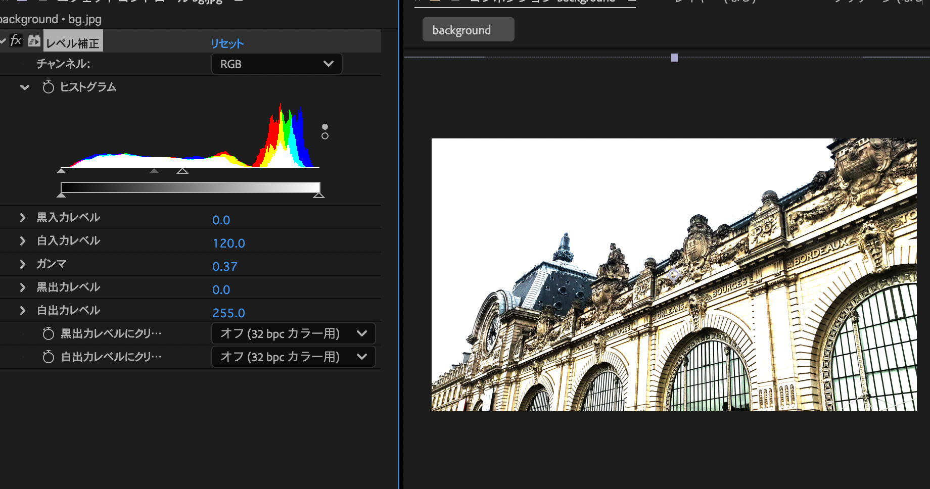- エフェクト -> レベル補正