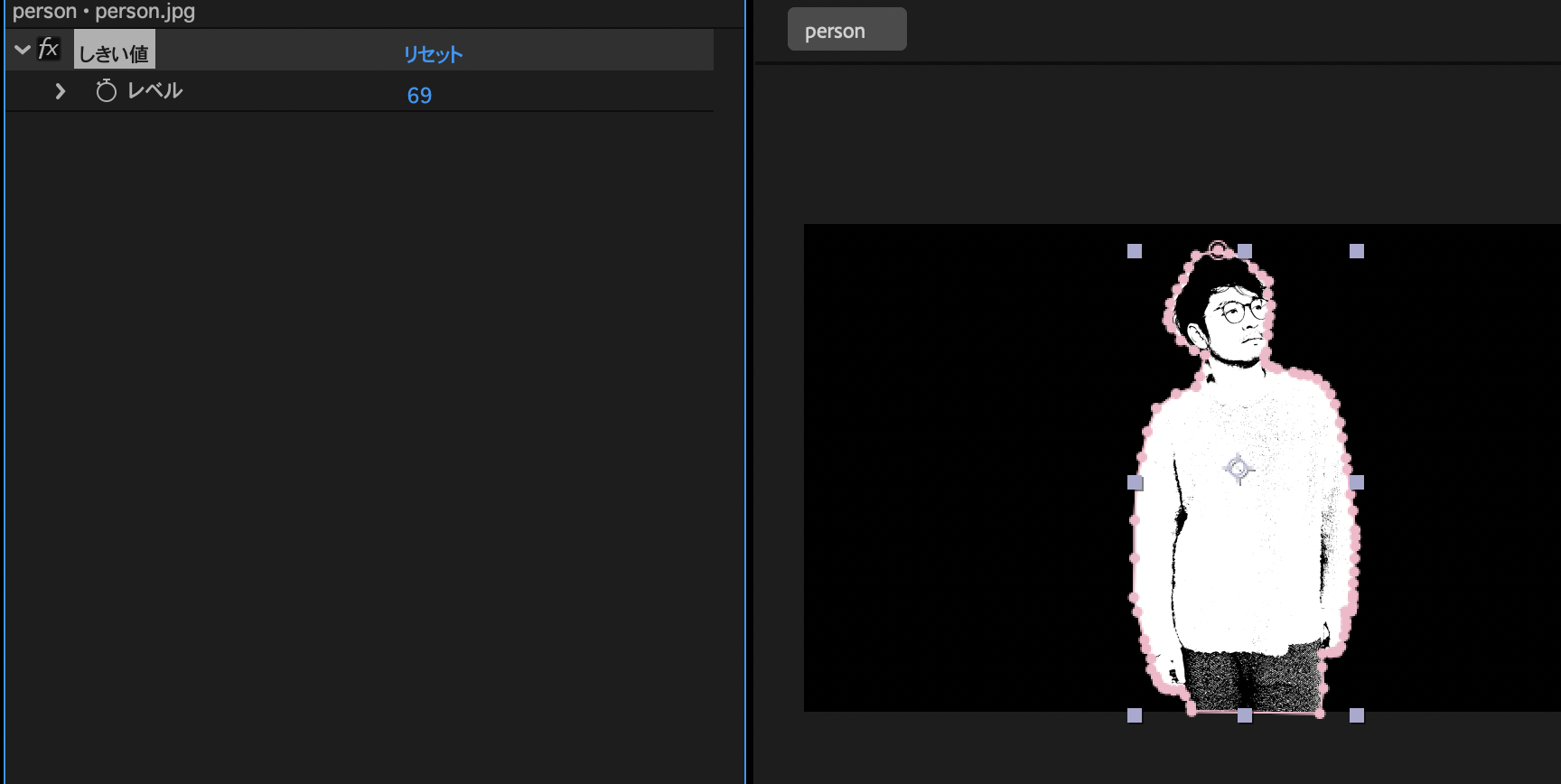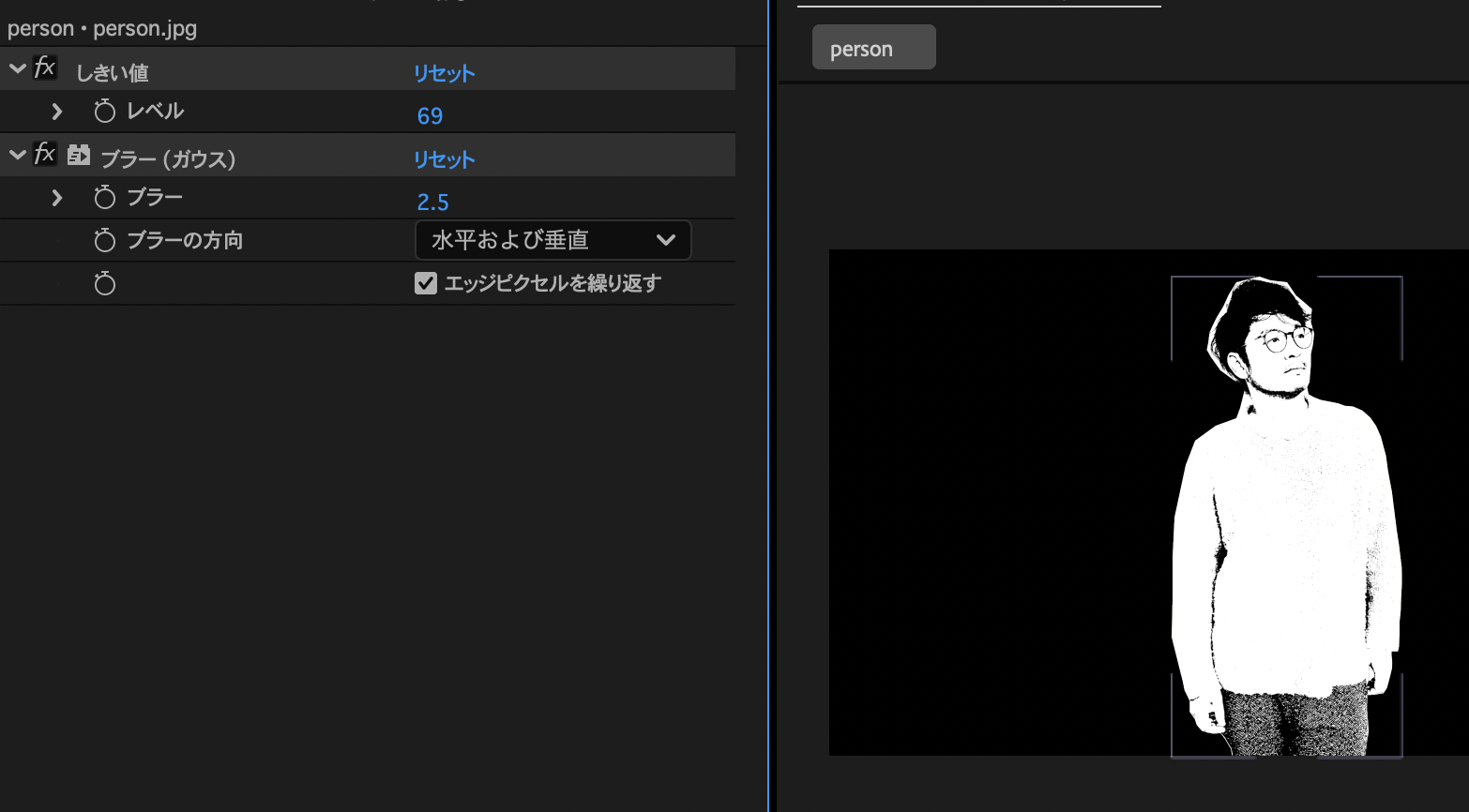 - しきい値エフェクトでモノクロに