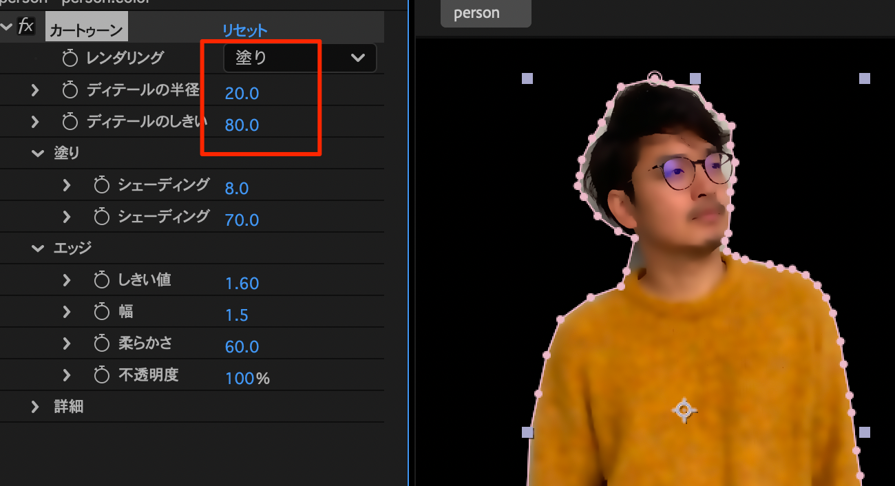 - personにうまく重なるように位置、大きさを調節