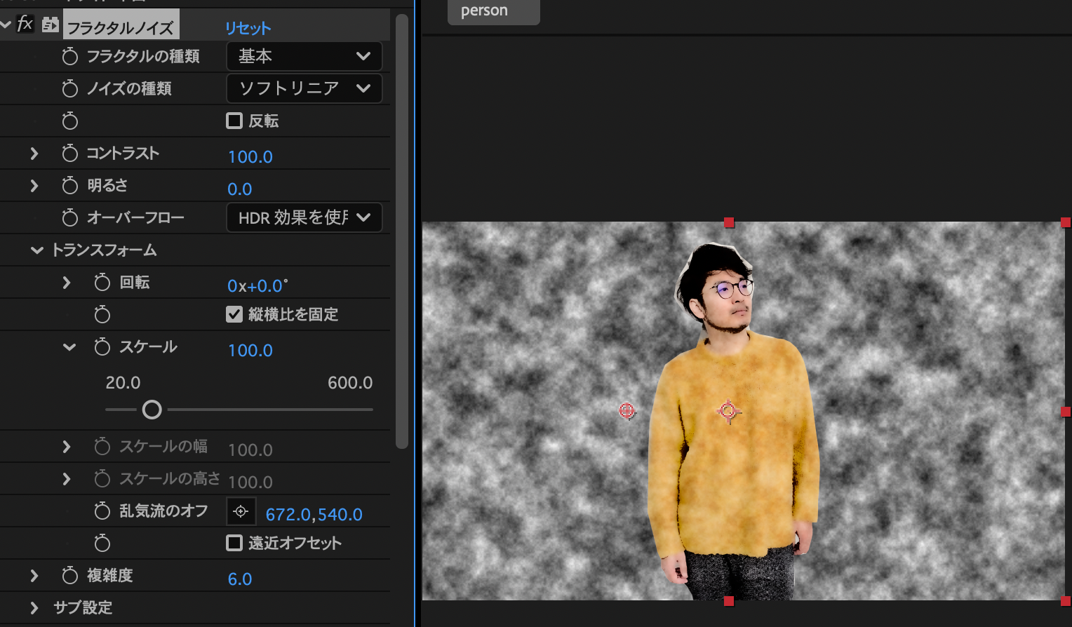 - 乱気流のオフセットを使って顔に黒がかからないように調整