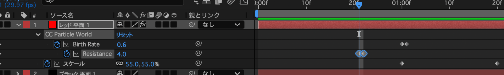 - パーティクルアニメができたのでドラッグして先頭から始まるようにする
