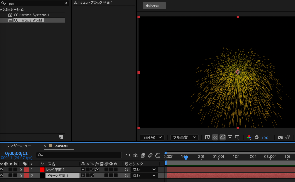 - 赤のレイヤーにparticle world エフェクトを追加