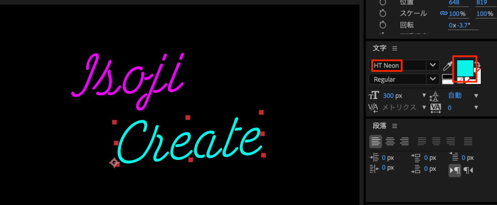 • HT Neonフォントで文字を入力ここでは2つに分けて入力した