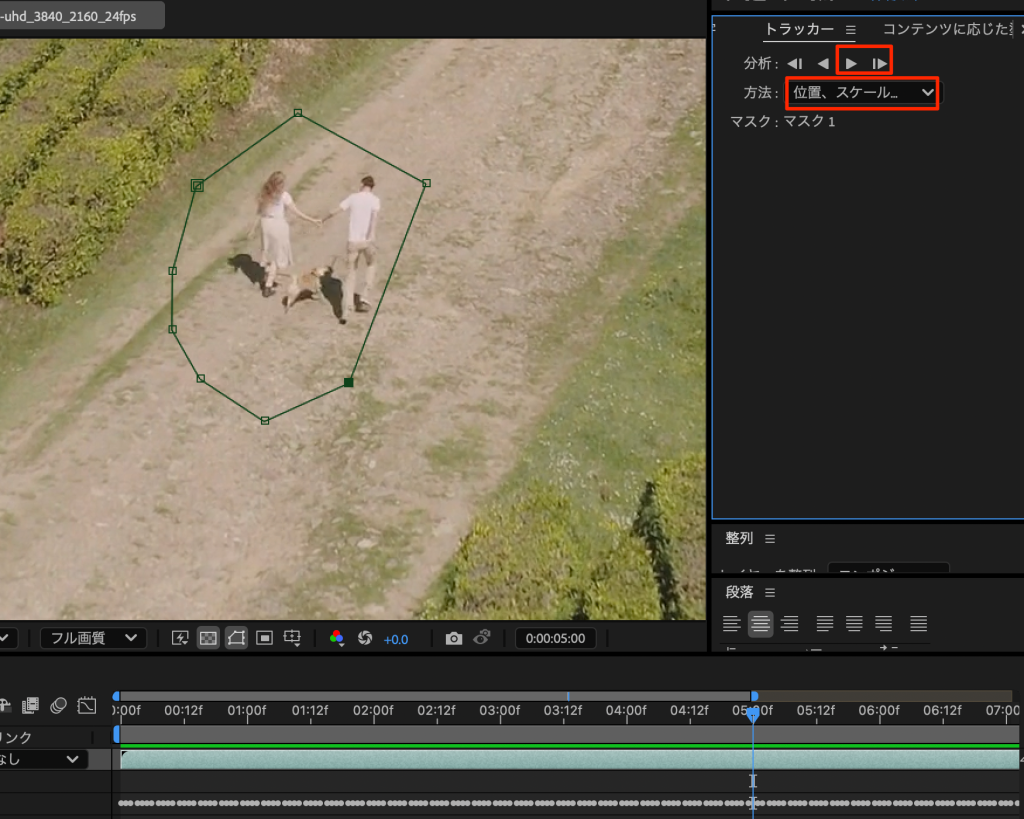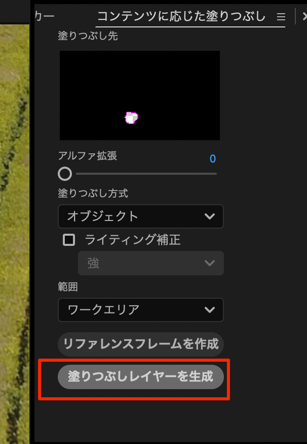 - 再生を押して自動的にフレームごとのマスクを作成する。