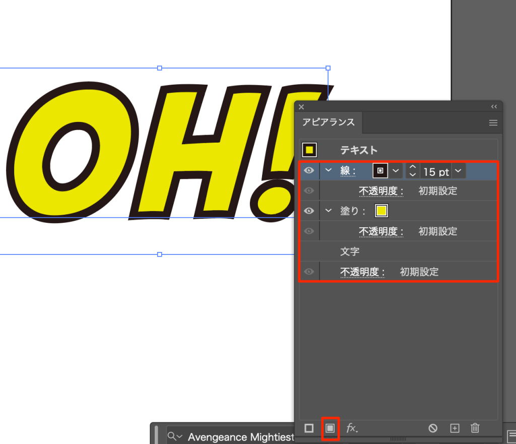 - アピランスパネルを開き新規に塗りと線を追加