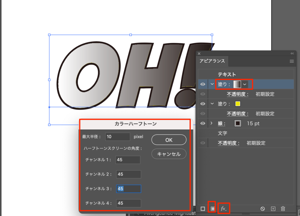 - イラレでアメコミ風の文字加工「網点・ドット」