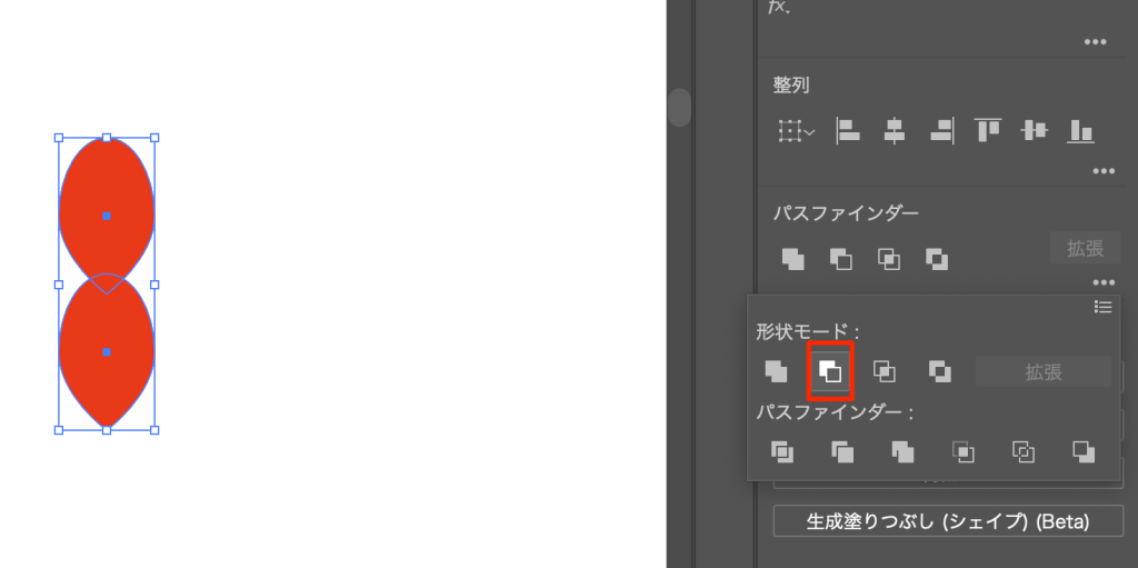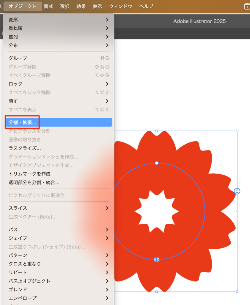 - この状態はシミュレーションをしているだけなのでこれでOKならばオブジェクトメニューから分割・拡張を選択する