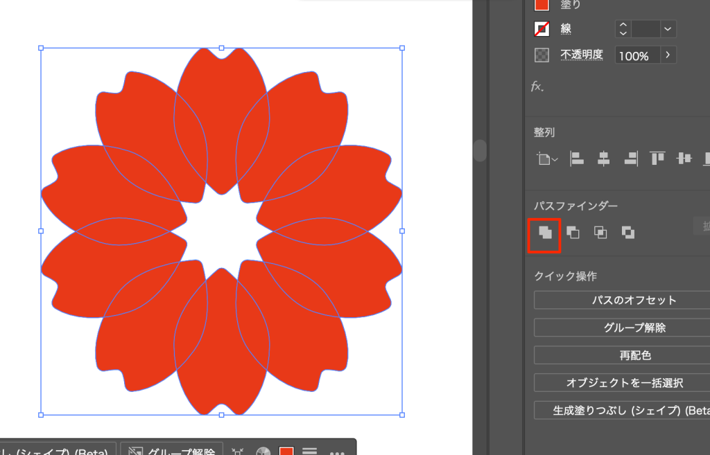 - ダイレクト選択ツールで内側のパスを選択してデリート