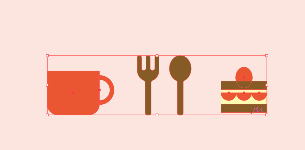 - 中央の2つを複製し、選択した状態で赤をスポイトして色をつける
