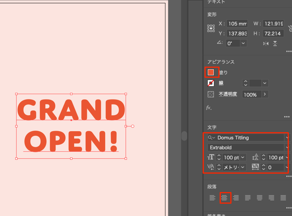 - 全体を選択して、左上隅からピッタリと収まるように変形する