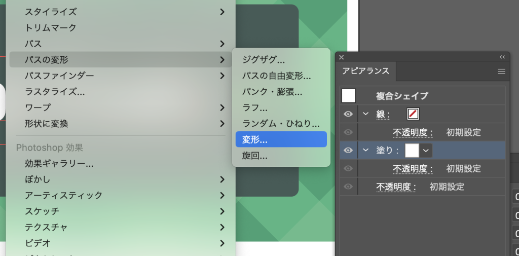 - パスの変形->変形を適用