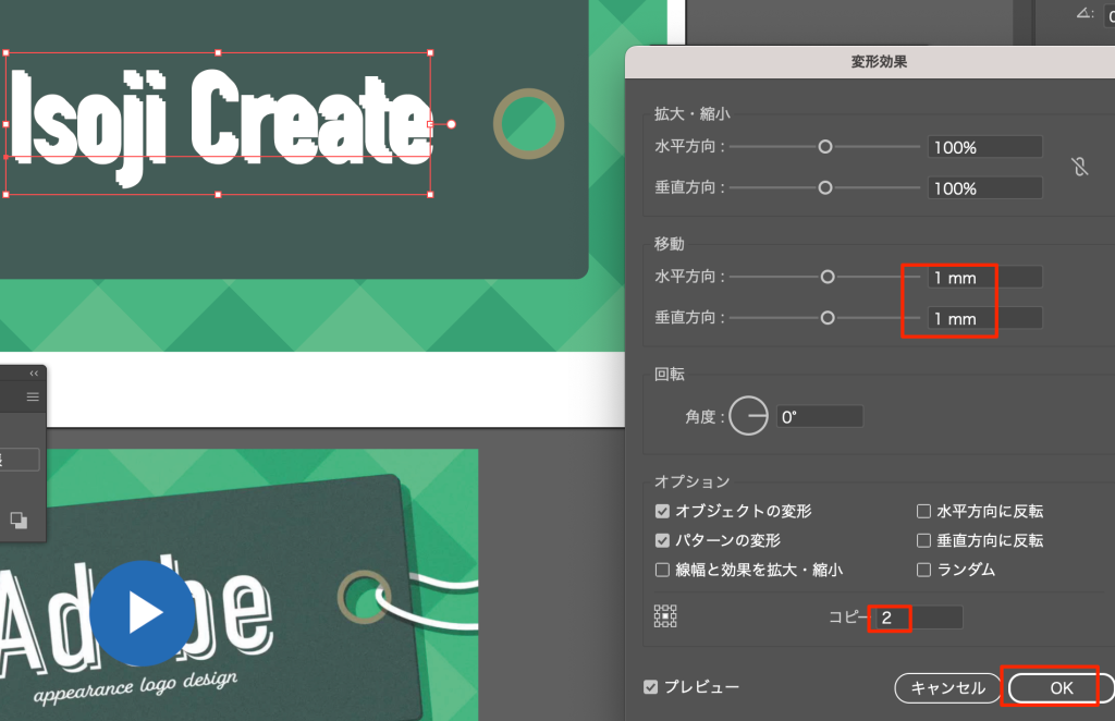- 水平と垂直にオフセット量を設定