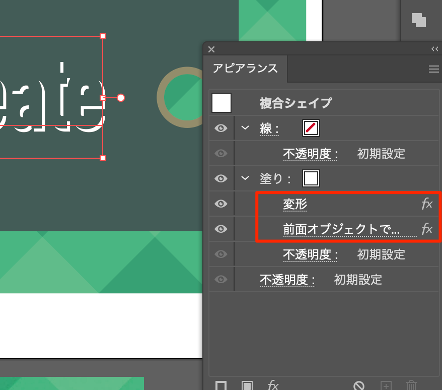 - テキストを選択し、パスファインダーから複合シェイプを作成