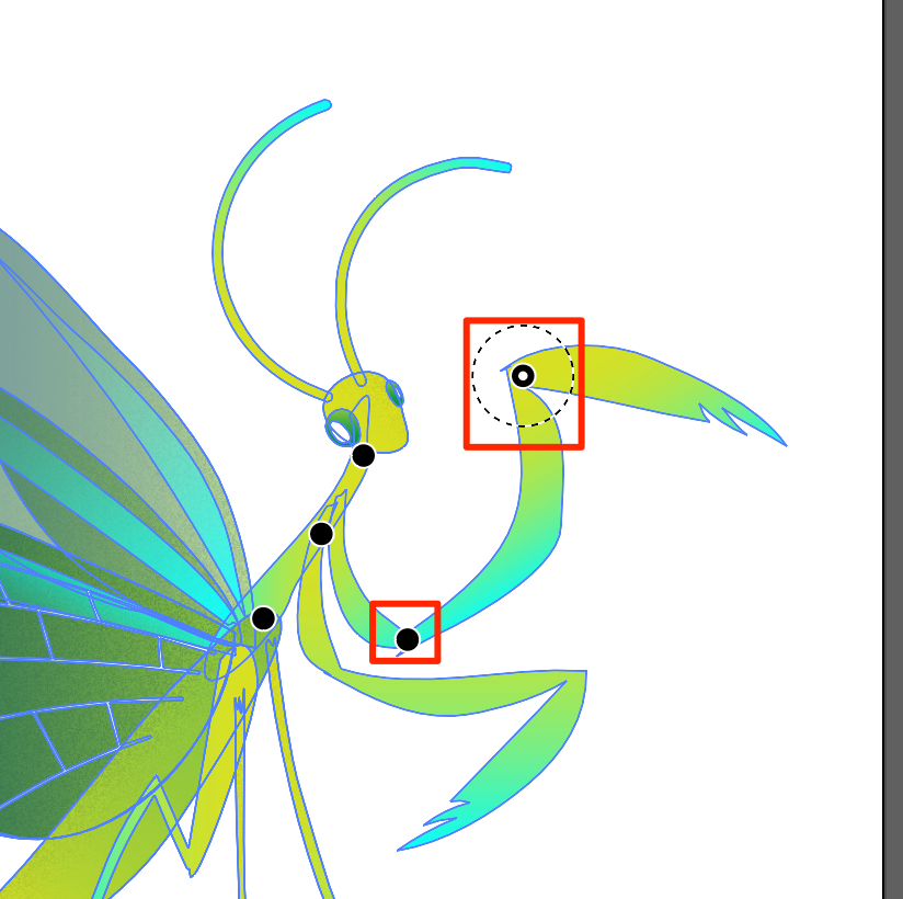 AI イラストのポーズを簡単に変更する Illustrator 2025.06.092025.06.10 目次 チュートリアル成果物 作業のながれ作成を終えた感想 チュートリアル Adobe 公式 成果物 作業のながれ サンプルファイルを開く 全体を選択してパペットツールを選択 4つのポイントが自動選択されるが、個別に選択してDelete メッシュが不要な場合はメッシュのオフを押す 3点を選択して回転移動などを行う 腕に2点追加して動かす シフトで2点を選択して移動することも可能 作成を終えた感想 対象を選ぶが、今回のような素材の場合は便利そう