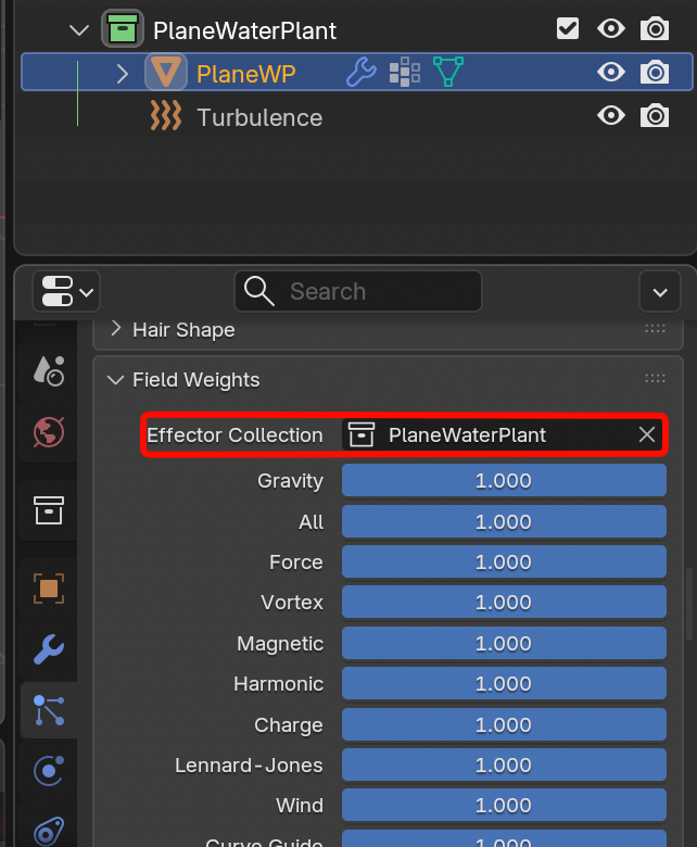 - フォースフィールドの影響を受けるものに対してFieldWeightでフォルダを指定