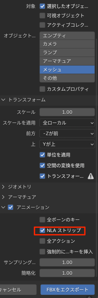 - Unityとの連携にはdopeSheetでアニメーションを作成->ストリップでNLAに転送の流れが余計なファイルが作られずベストだった