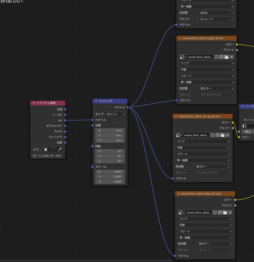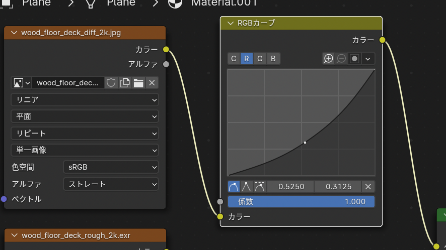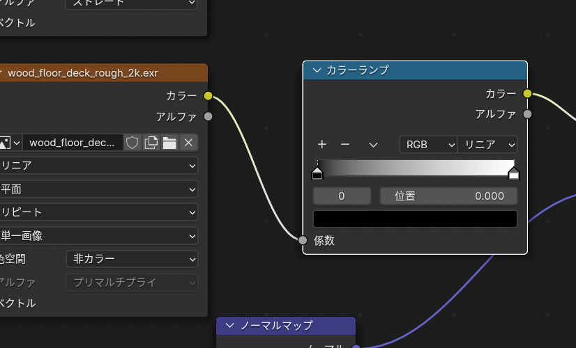 • 先ほどと同じように新規に テクスチャ->画像テクスチャでラフネスマップを追加