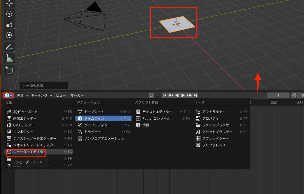 • shift a で平面を追加