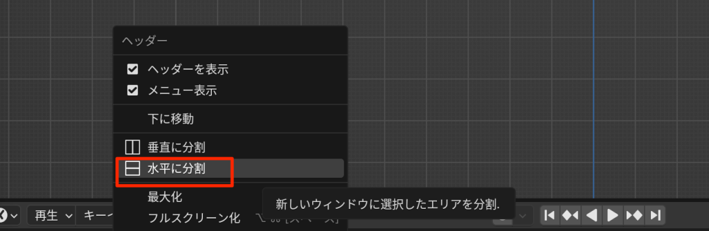 - 境目で右クリックして垂直に分割