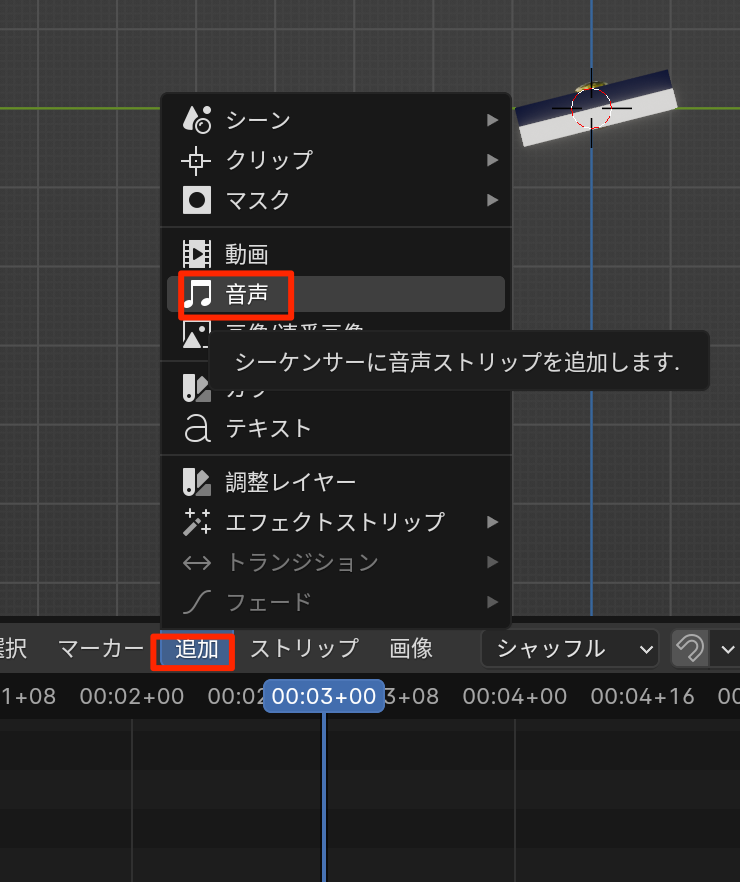 - 追加->音声で音源(mp3)を読み込む