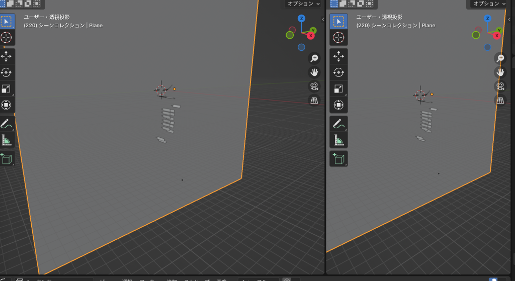 - shift+aから平面を追加して壁にする