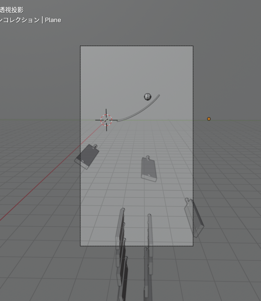 - 時間を進めて、ボールと並行になるところにカメラを移動して、kでキーフレームを打つ