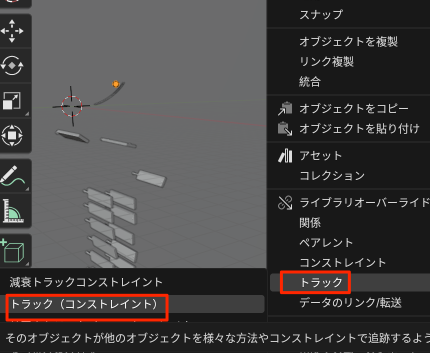 - オブジェクトメニュー->トラック->コンストレイント