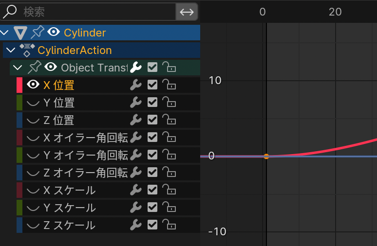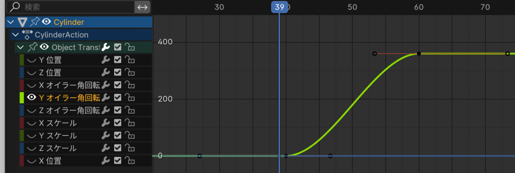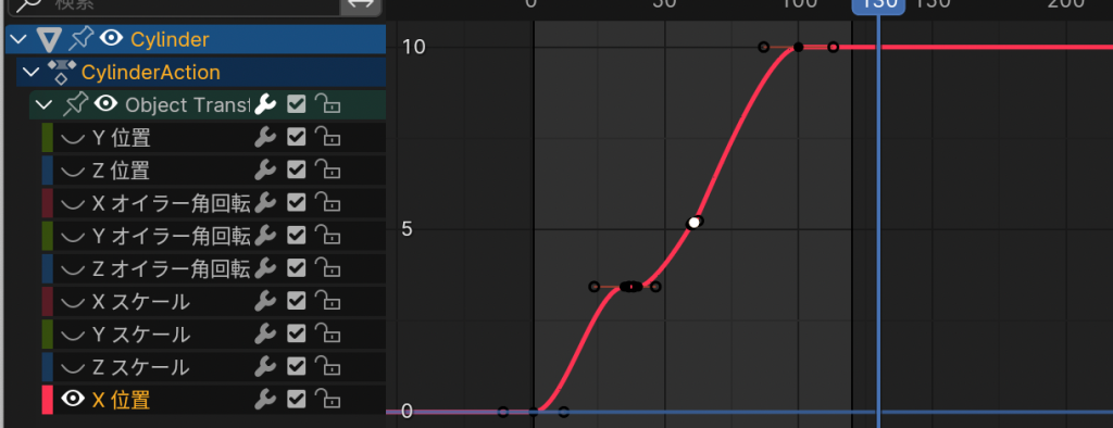- タイムラインとキーフレーム。基本はAeとかと同じだが操作性はだいぶ違う