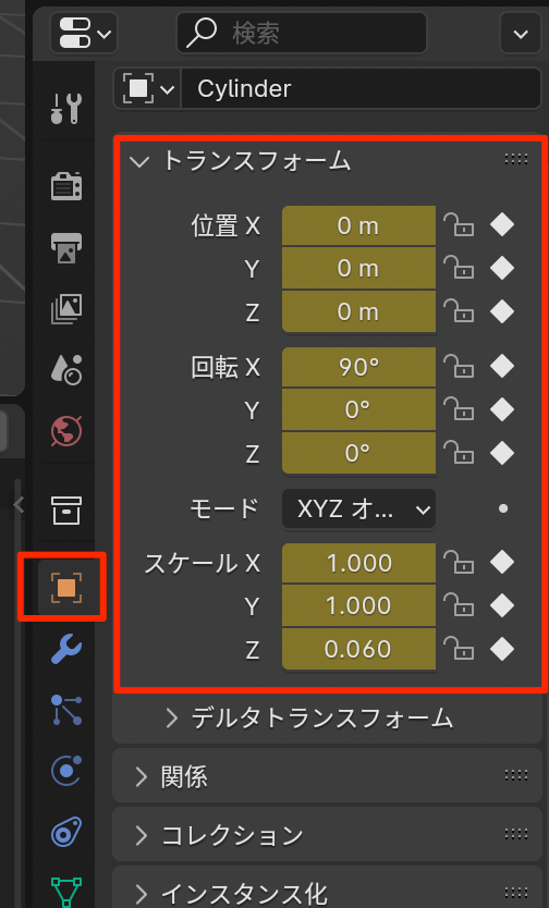 - オブジェクトメニューから設定することもできる