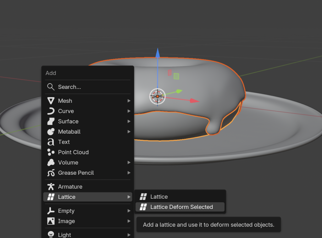 Blender Basic Modelling Tutorial part4 Blender 2025.12.21 目次 チュートリアルポイントLattice感想 チュートリアル ポイント Lattice ドーナツとアイシングを選択 shift + a > Lattice >Lattice Deform Selected 頂点を増やす Screenshot PSのワープツールのように変形させる 非破壊! 非破壊で変形を行えるが、今回はapplyする 感想 Latticeツールで非破壊変形は強い! 肌や食べ物など、光が表面で100%反射しないものはsubserfaceの設定をいれるとよい