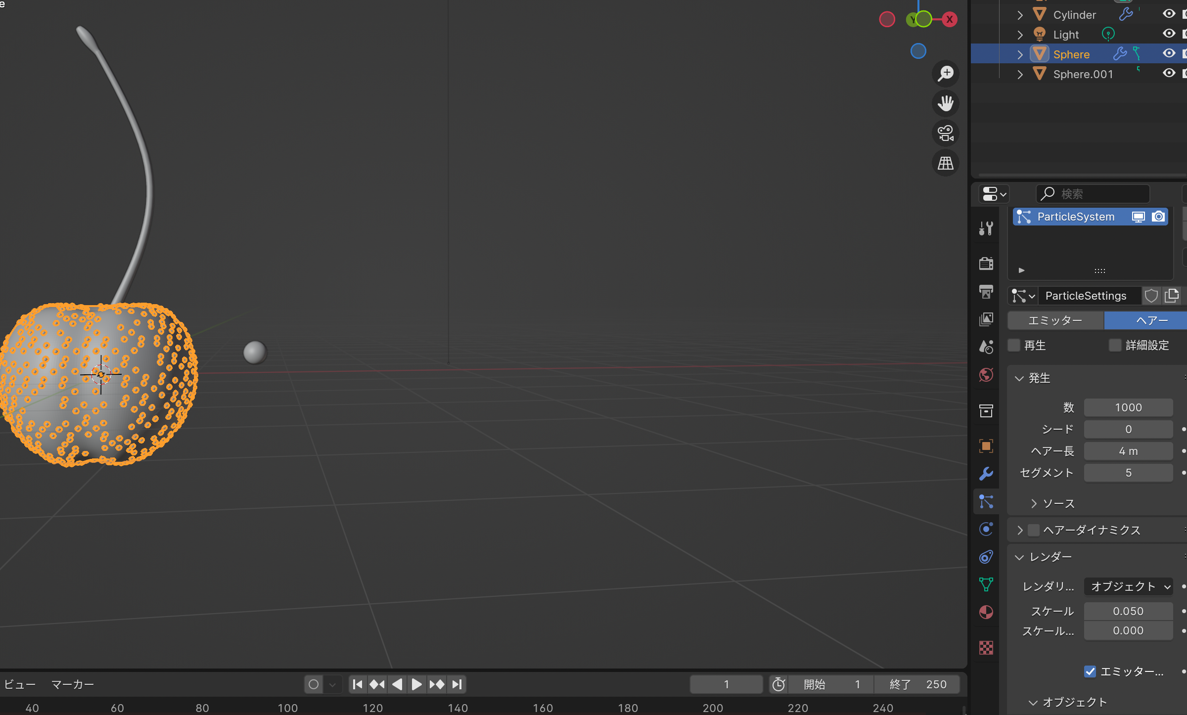 - さくらんぼを選択してパーティクル