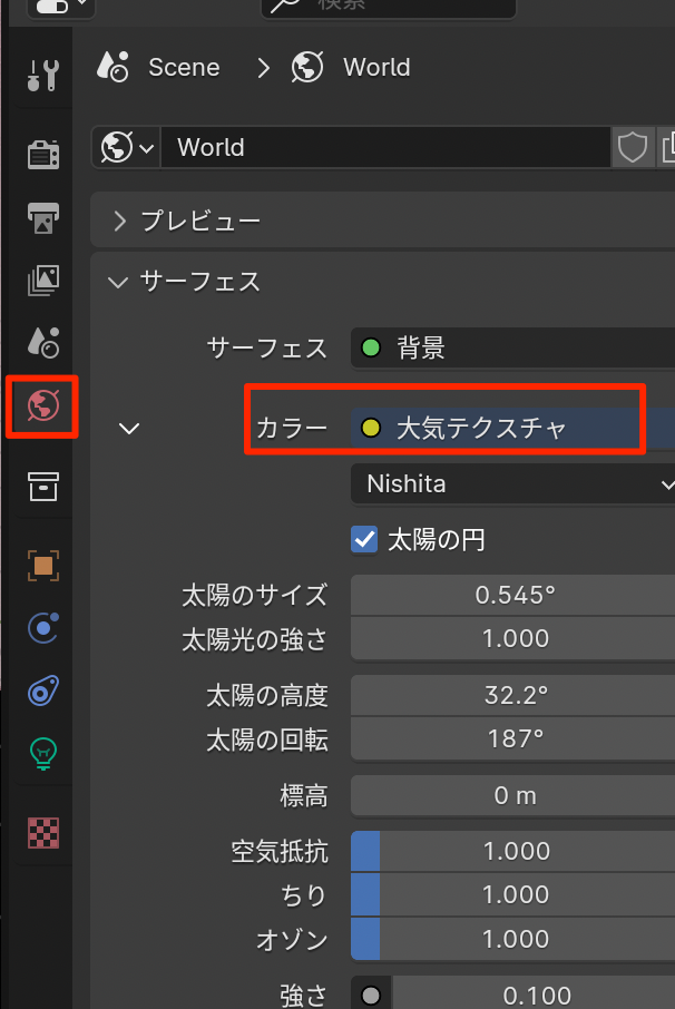 - ワールドで大気テクスチャを追加