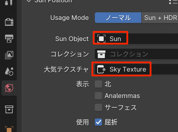 - skay potion でsunとskytextureを設定