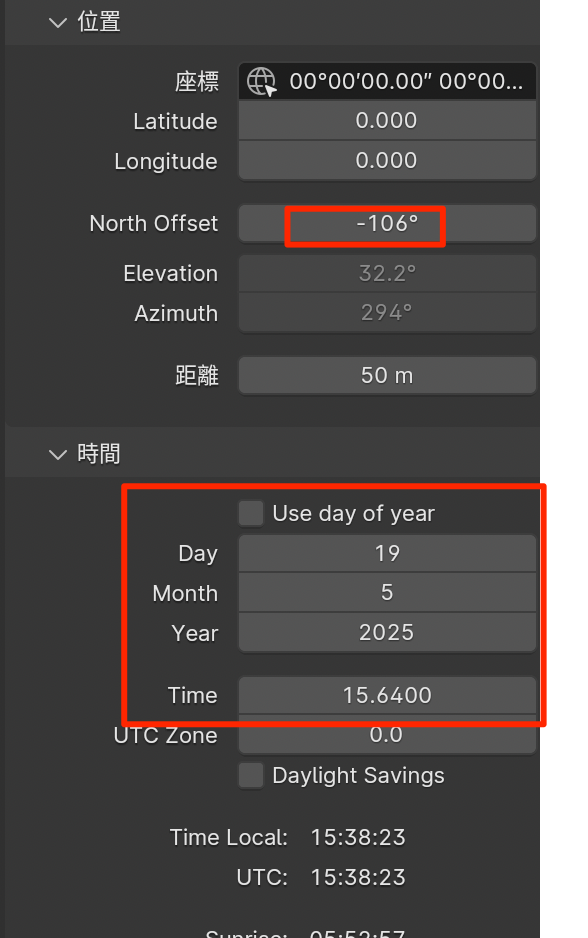- 太陽光の強さを設定
