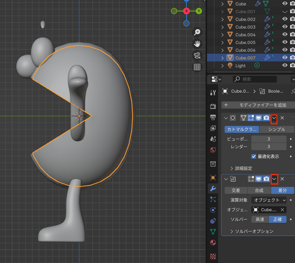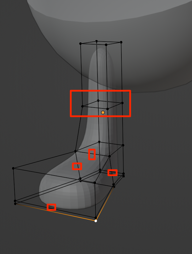 - 透過モードで頂点を複数選択しながらガニ股になるように変形する