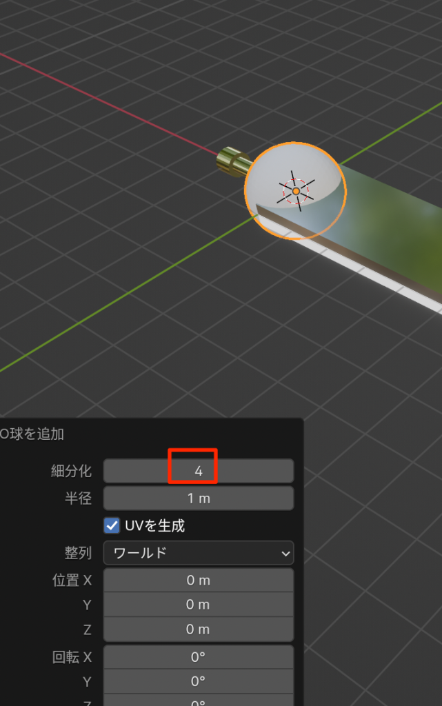 - 新規にICO球を作成し、細分化を4