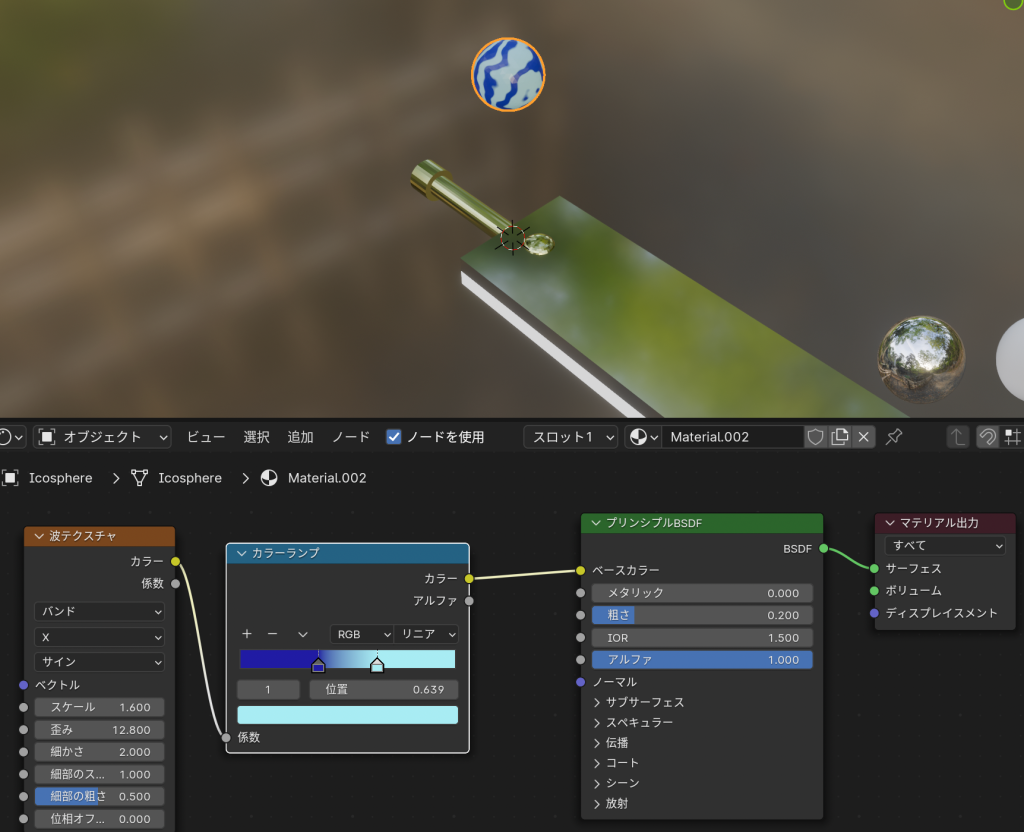 - 波テクスチャとカラーランプを使って模様を作成