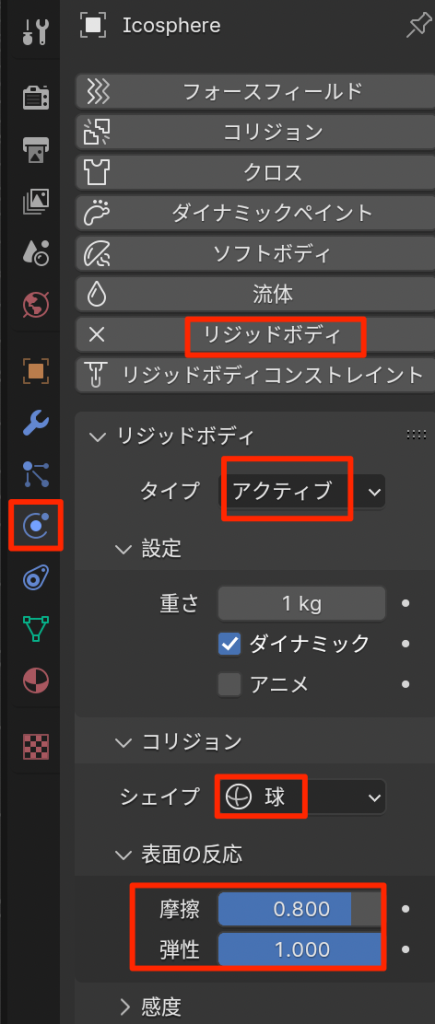 - 球にリジッドボディを適用する