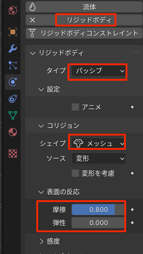 - レールにもリジッドボディ