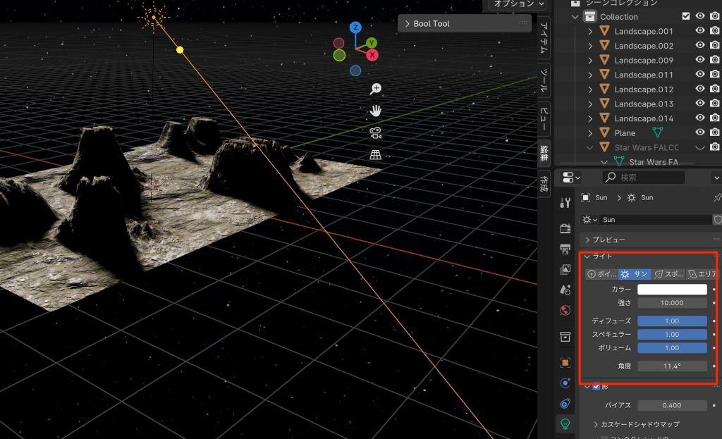 - 配置したlandScapeの大きさ、位置、角度などを調節