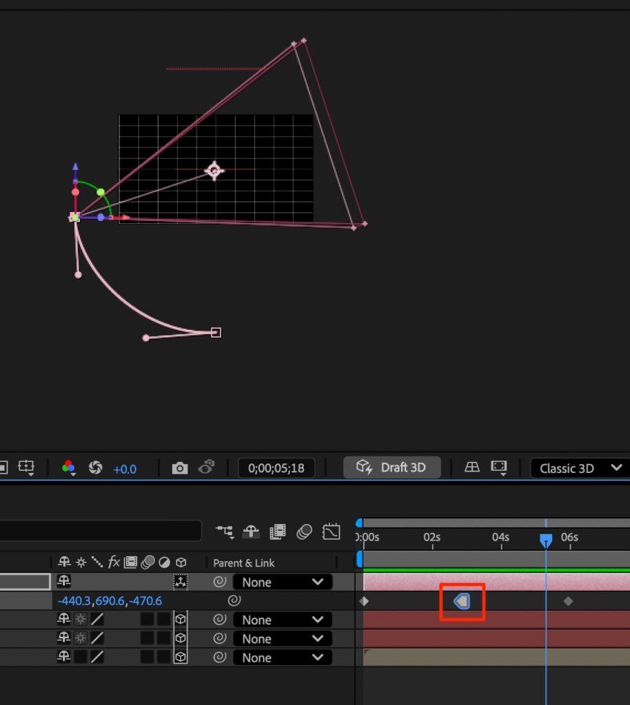 - キーフレームを選択して、停止したキーフレームに切り替え