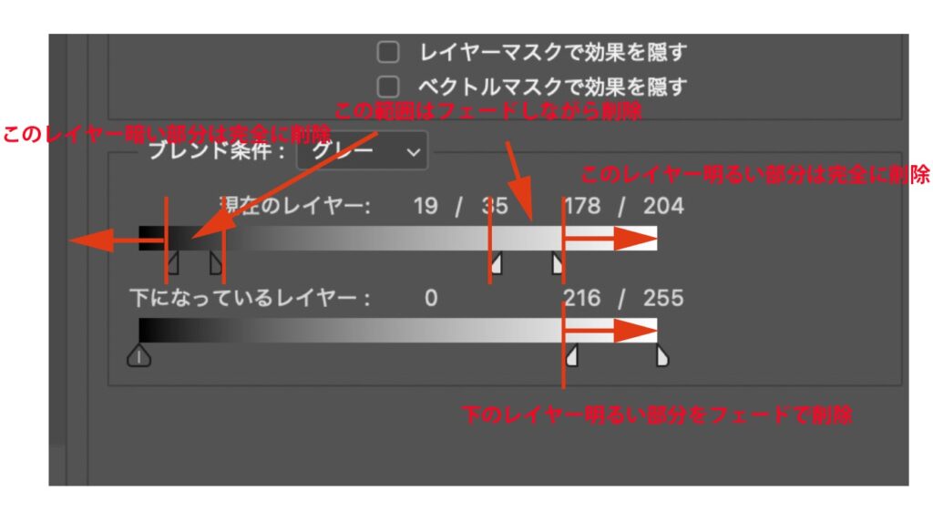 - ブレンド条件は適用しているレイヤーの削除する部分を指定する